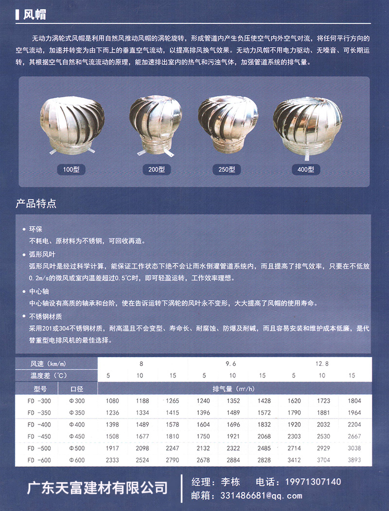 風(fēng)帽的產(chǎn)品特點和規(guī)格尺寸